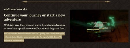 According to this new disclaimer, "Save data created in the second save data slot in The Legend of Zelda: Tears of the Kingdom – Nintendo Switch 2 Edition cannot be transferred to The Legend of Zelda: Tears of the Kingdom on Nintendo Switch".