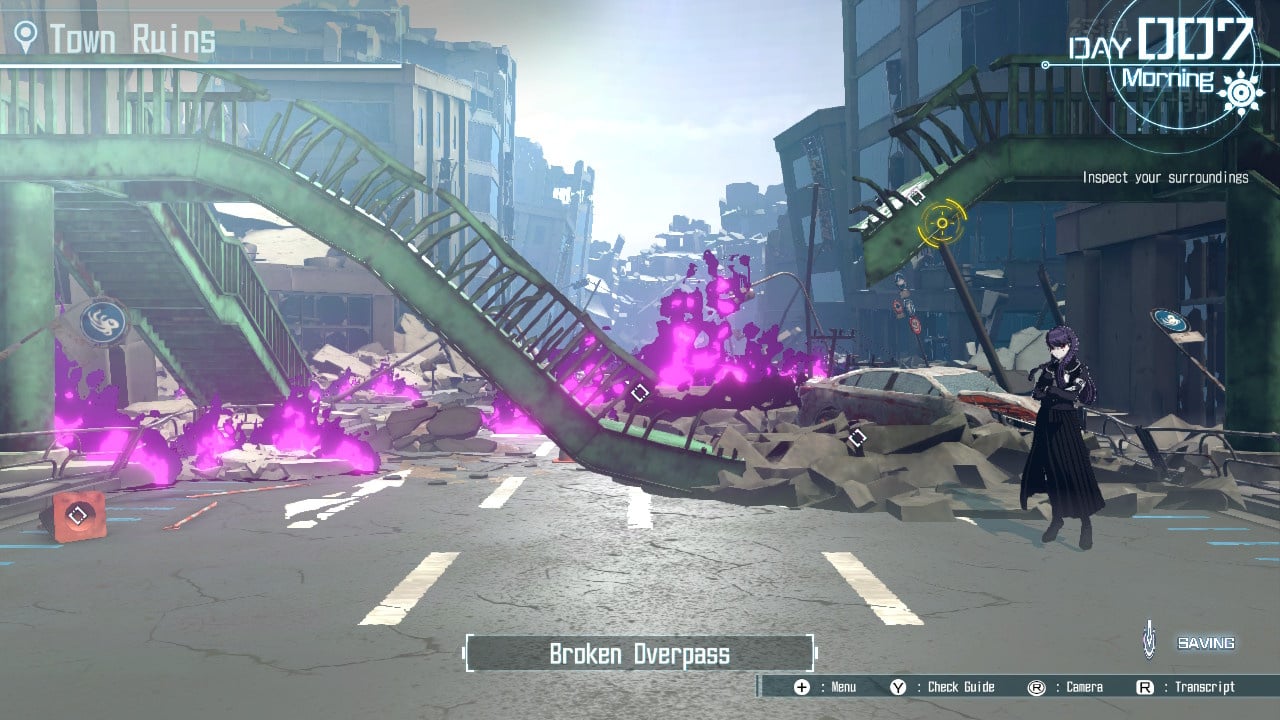 When you choose to leave the campus, either for plot reasons or for resource gathering, you’re presented with a ruined world that has an almost Mario Party-like board game layout snaking through it. Each point on the board is coloured to indicate the level of risk associated with the space, and each one can give you things like item drops, enemy battles, or Etrian Odyssey-esque interludes where you’re prompted to make some sort of decision and either gain or lose something for your party based on the outcome.
